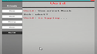 For this phase of development I focused on the Notification system, the Void chat popup and the scene transitions, all of these help the games pacing and to maintain the horror atmosphere Notification...